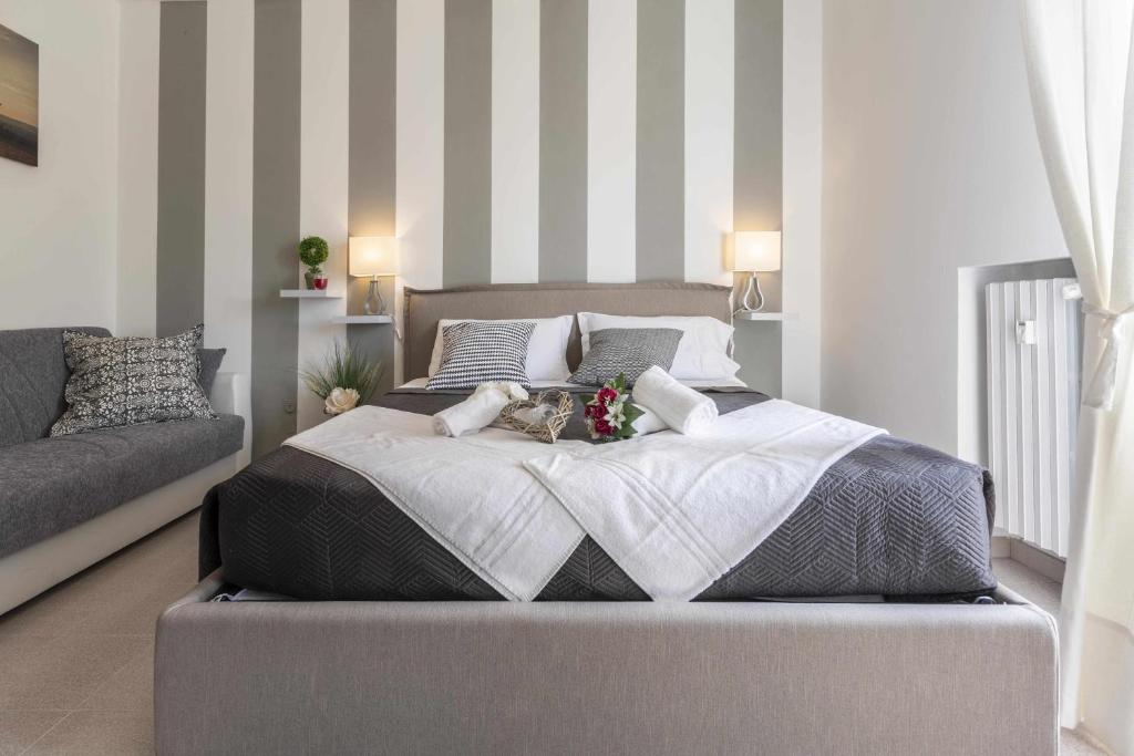 L’alloggio è perfetto per coppie o famiglie che cercano relax e praticità. Dispone di due ampie camere matrimoniali, arredate per garantire il massimo comfort, di un bagno completo con doccia e bidet e di un ampio terrazzo che collega entrambe le camere, perfetto per rilassarsi.