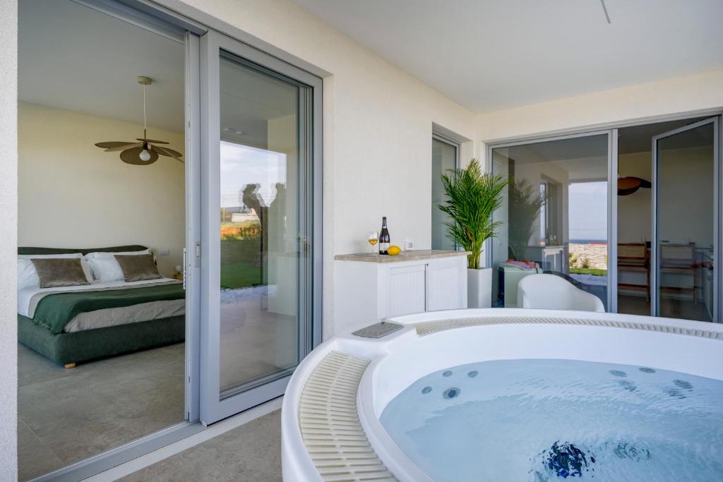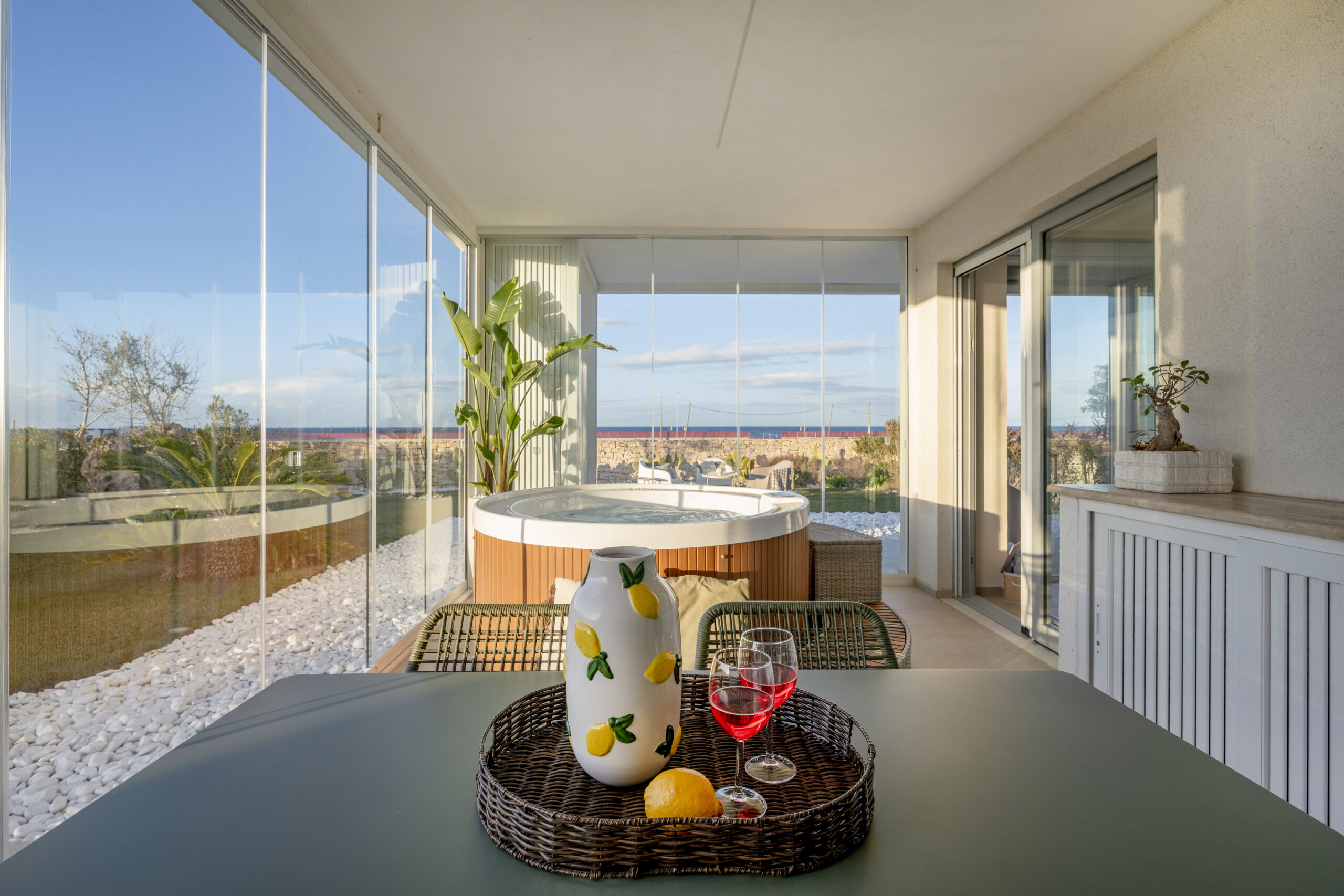 Villa fronte mare, nuovissima soluzione moderna, luxury e minimal completa di cucina, camera da letto, due bagni completi di doccia, mini piscina riscaldata, doccia esterna, e giardino di 270 mq con zona solarium, e due posti auto riservati.